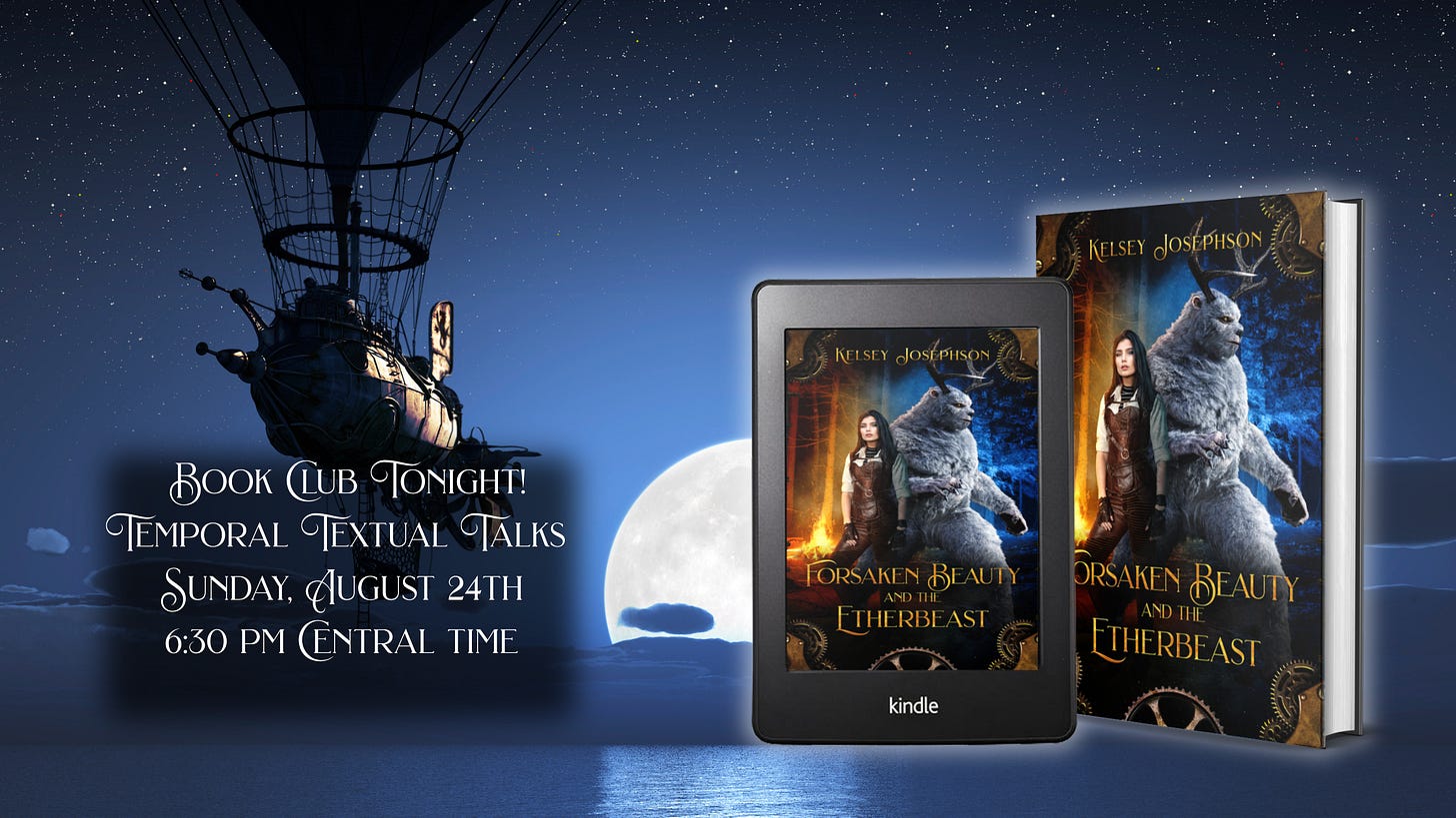 Hello! I just wanted to drop a quick note that book club is TONIGHT!!! Iβm so excited that my book, Forsaken Beauty and the Etherbeast, is this monthβs pick for Temporal Textual Talks, a virtual steampunk book club. You don't have to finish reading the book to participate, but there may be spoilers. Come join us! πβοΈπ
