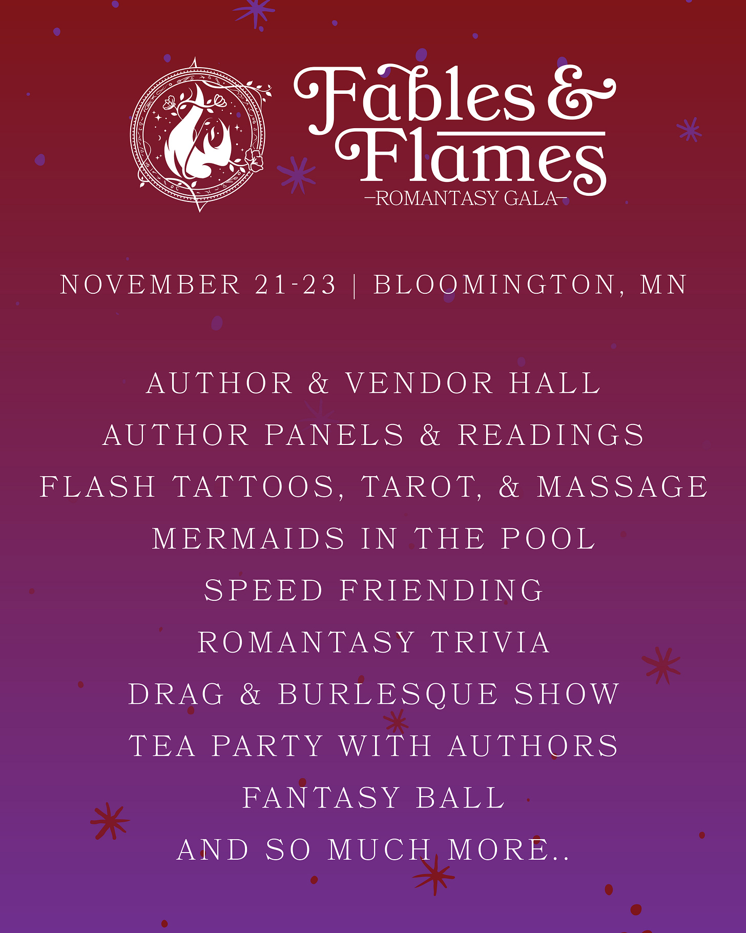 From November, 21st-23rd, I’ll be in Bloomington, Minnesota for Fables and Flames Romantasy Gala as an attending author! I’ll have a table with my books and other bookish goodies.